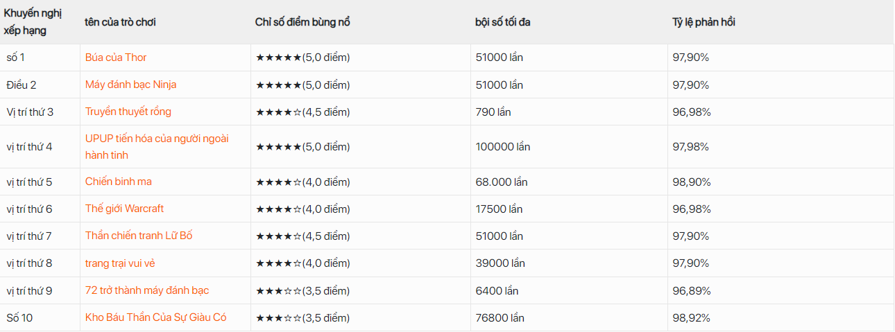 Hướng dẫn này sẽ tiết lộ câu trả lời cho bạn, giúp bạn có cái nhìn khái quát về các trò chơi slot trực tuyến sẽ thu hút nhiều sự chú ý nhất của người chơi vào năm 2024 và cung cấp các chiến lược trò chơi để giúp bạn đạt được kết quả tốt hơn trong trò chơi. Hãy cùng khám phá nhé!Với sự tiến bộ của công nghệ, các trò chơi giải trí trực tuyến ngày càng trở nên phổ biến đối với người chơi. Máy đánh bạc trực tuyến đã thu hút một lượng lớn người đam mê trò chơi với thiết kế trò chơi độc đáo, đồ họa đặc biệt và tiền thưởng khổng lồ. Nhưng trong thị trường trò chơi đa dạng này, trò chơi máy đánh bạc nào sẽ thực sự trở thành trò chơi yêu thích của người chơi vào năm 2024 và có chỉ số điểm cao nhất?